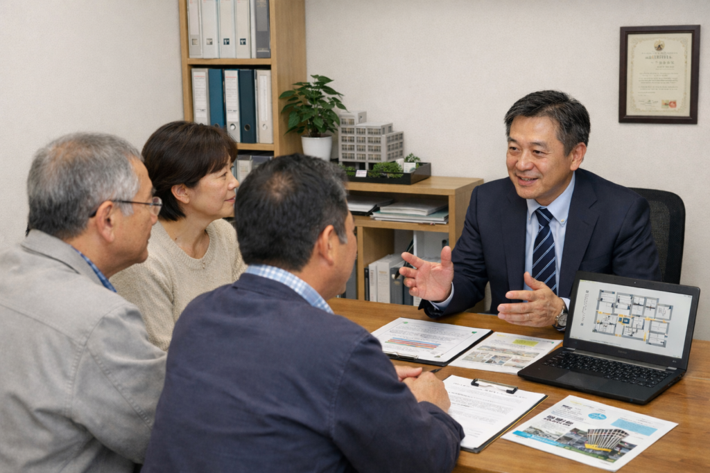 マンション管理士は、マンション管理組合の立場に立って、公平性・透明性を持ち、適切・円滑に組合活動が行われるように支援します。